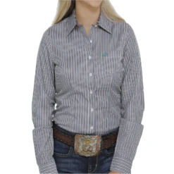 Cinch® Ladies Green Pinstripe Printed Button Down Shirt MSW9164188